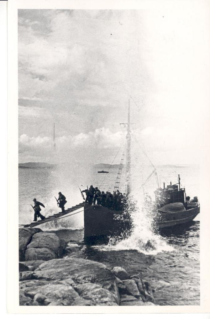 К поздравлению прикреплено фото Евгения Халдея, на котором бойцы морской пехоты высаживаются на территорию, занятую противником.