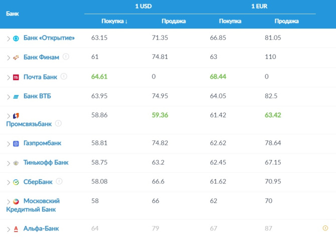 Выгоднее всего продавать доллары и евро в Мурманске в Промсвязьбанке, а покупать в Почта-банке.