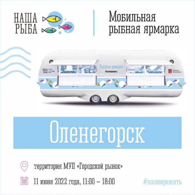 Мобильная ярмарка «Наша рыба» в субботу, 11 июня, приедет в Оленегорск, где на территории «Городского рынка» северяне смогут приобрести рыбную продукция по ценам ниже рыночных.