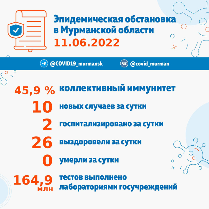 В Мурманской области за минувшие сутки выявлено 10 случаев заболевания CoViD-19.