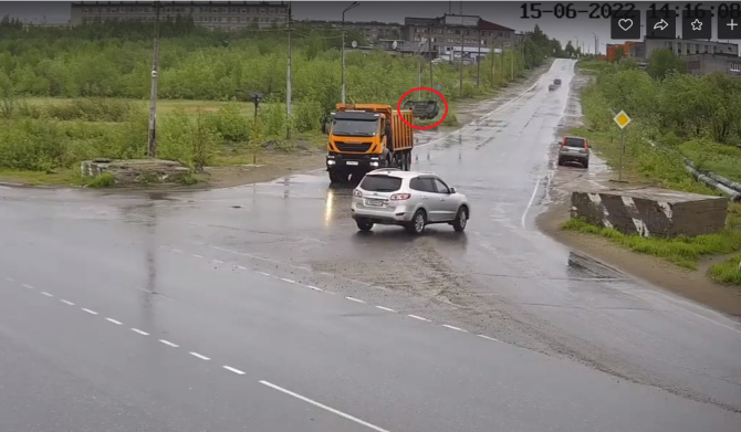 В Мончегорске водитель автомобиля Chevrolet Cruze на скорости пытался войти в поворот, не учёл состояние дороги во время дождя, и не справился с управлением в попытке уйти от столкновения с большлегрузом.