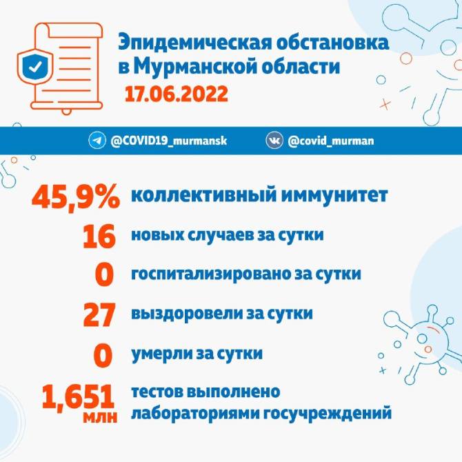 В Мурманской области за минувшие сутки выявлено 16 случаев заболевания CoViD-19.