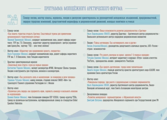 Свыше 500 участников уже зарегистрировались на форум. Программа мероприятий доступна на фото, подготовленные Комитетом молодежной политики Мурманской области.
