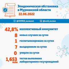 В Мурманской области за минувшие сутки выявлено 8 случаев заболевания CoViD-19.