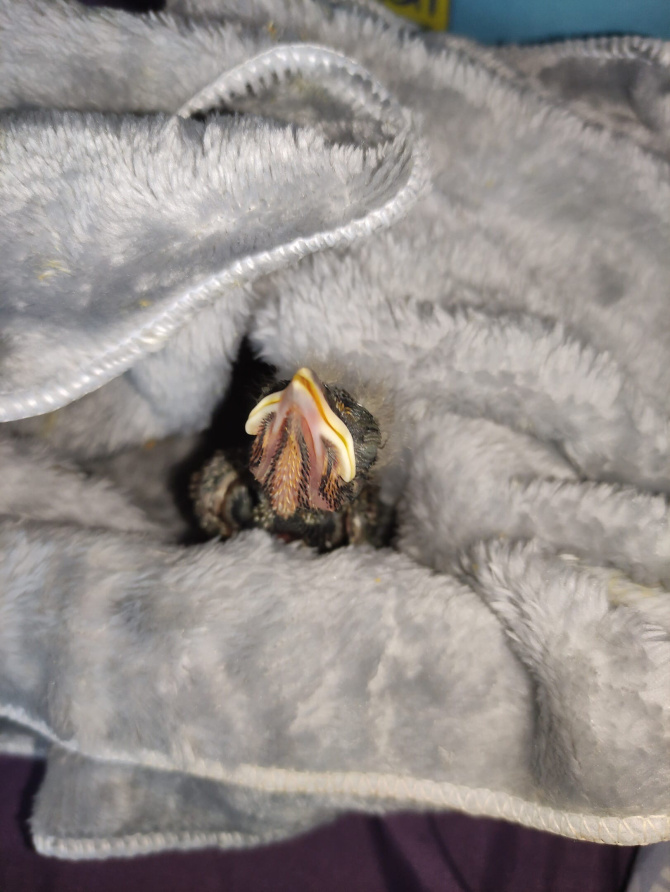 Кроме воронят, Наталья выхаживает стайку из пяти воробьят, одного лысого дрозденка и одного мохноногого сыча.