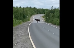На 28-м километре автодороги «Заполярный – Сальмиярви» замечены взрослые особи лося. Сообщают в группе ВКон…