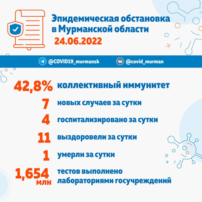 В Мурманской области за минувшие сутки выявлено 7 случаев заболевания CoViD-19.