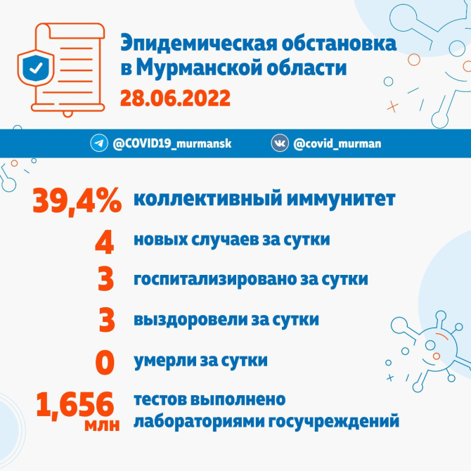 В Мурманской области за минувшие сутки выявлено 4 случая заболевания CoViD-19.