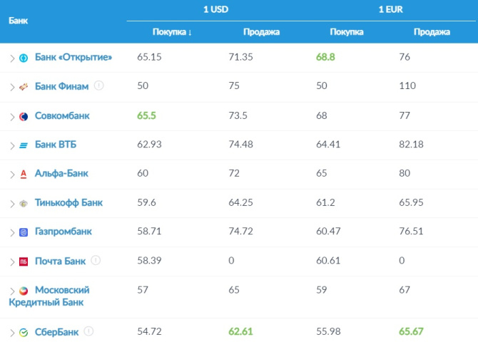 В банках Мурманска выгоднее всего продать доллары в Совкомбанке, а купить в Сбербанке. Евро выгоднее покупают в Банке Открытие, а продают в Сбербанке.
