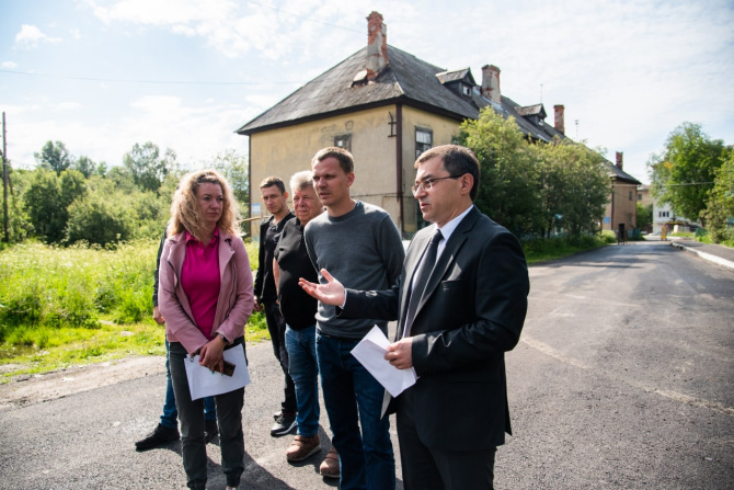 Глава города Мурманска Игорь Морарь проверил ход работ на проезде Жуковского в Росте. Объект готов на 70%. Подрядчику осталось положить верхний слой асфальта.