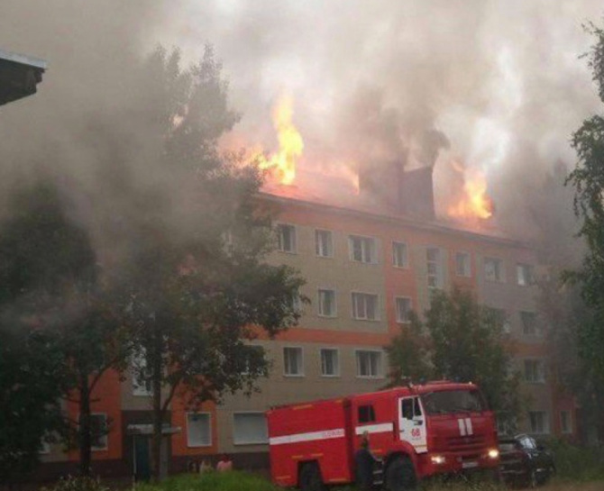 Накануне вечером в Ковдоре загорелась кровля у жилого пятиэтажного дома №5 на улице Ленина. Площадь пожара составила 12 на 48 метров.
