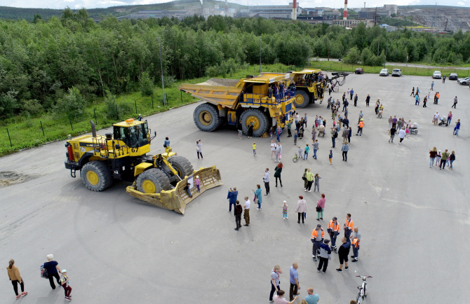 В этот раз цех технологического транспорта, рудник «Железный» и буровзрывной цех представили 6 единиц оборудования: погрузчик, грейдер, колёсный бульдозер, буровую установку и два большегрузных самосвала: 136-тонный БелАЗ и 90-тонный Комацу. Для жителей Ковдора это отличная возможность воочию познакомиться с карьерными исполинами, на которых работают их отцы, мужья и сыновья.