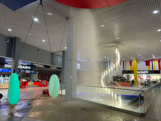 Согласно информации от очевидцев, на четвертом этаже был поврежден потолок, затопило несколько этажей, вода обрушилась водопадом на помещения торгового центра.