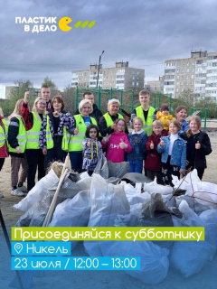 Сегодня в Никеле с 12:00 до 13:00 пройдет уже третий субботник в рамках проекта «Пластик в дело». …