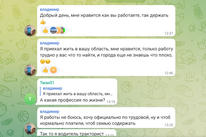 «Я работы не боюсь, хочу официально, по трудовой, ну и чтоб нормально платили, чтоб семью содержать. Так-то я водитель-тракторист», - рассказал Владимир.