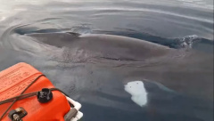 В Териберке «поздороваться» с рыбаком приплыл кит.