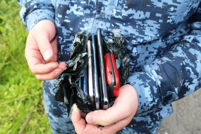 В исправительной колонии строгого режима №17 при обходе прилегающей территории участка колонии-поселения учреждения в траве был обнаружен полиэтиленовый пакет черного цвета, в котором было обнаружено 6 мобильных телефона.