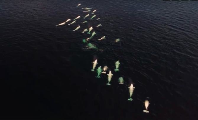 Гости из Вологды запечатлели поистине завораживающий момент - стая белух резвилась в холодных волнах Баренцева моря.