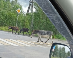 Местные жители засняли в Апатитах трех ослов, бегающих по проезжей части. Об этом сообщили в группе «ХибИнформБюро».