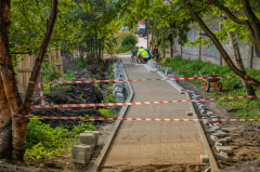 В Мурманске дорожки к дому №19 на улице Егорова, проходящие мимо забора стадиона «Строитель&ra…