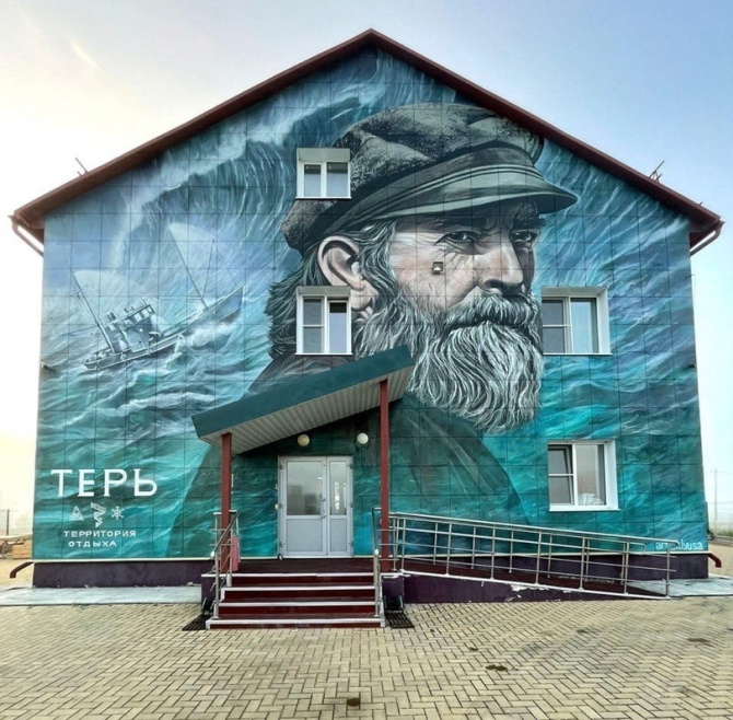 Фасад мини-гостиницы «Терь» в Териберке украсил новый мурал.