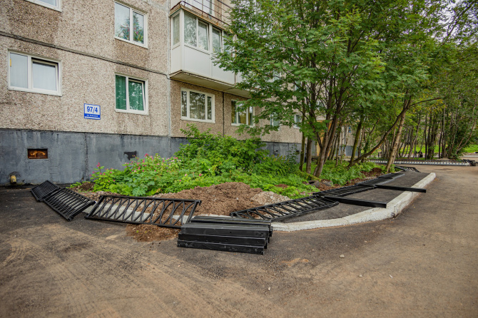 Двор на Кольском проспекте за бывшей «Лакомкой» отремонтировали уже на 72%. При этом отмечается, что это один из самых больших ремонтируемых объектов в областном центре в рамках формирования комфортной городской среды.