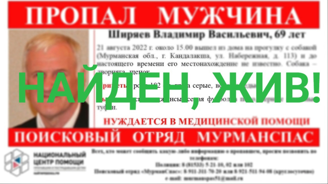 Напомним, 21 августа в районе 15:00 69-летний Владимир Ширяев вышел на прогулку с собакой и после этого его месторасположение не было известно.