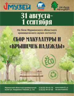 С 31 августа по 1 сентября с 9:00 до 17:00 на базе Мурманского областного краеведческого музея пройдет сбор макулатуры…