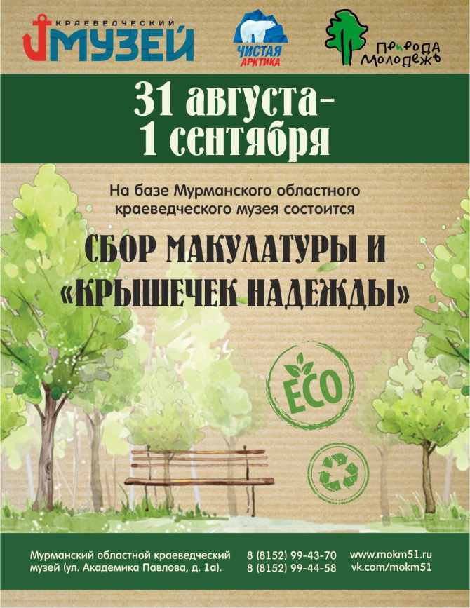 С 31 августа по 1 сентября с 9:00 до 17:00 на базе Мурманского областного краеведческого музея пройдет сбор макулатуры и пластиковых крышечек.