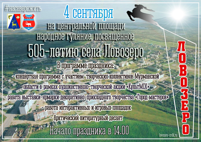 4 сентября Ловозеро отмети 505-летие. Праздничное мероприятие пройдет на центральной площади села.