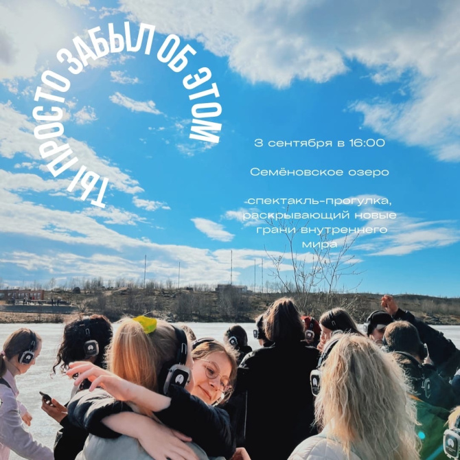 В эту субботу, 3 сентября, вас ждёт удивительное путешествие в свой внутренний мир, полный свободы и любви к себе в спектакле-прогулке «ТЫ ПРОСТО ЗАБЫЛ ОБ ЭТОМ» по маршруту Семеновского озера.