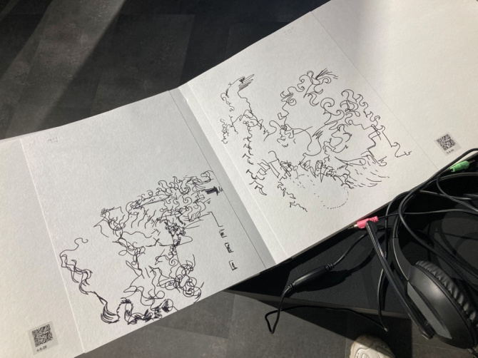 Желающие могут попробовать их прочитать. Для тех, кто предпочитает слушать, создана экспериментальная аудио пьеса. Звуковые дорожки доступны по QR-коду, расположенному на каждой странице пьесы.