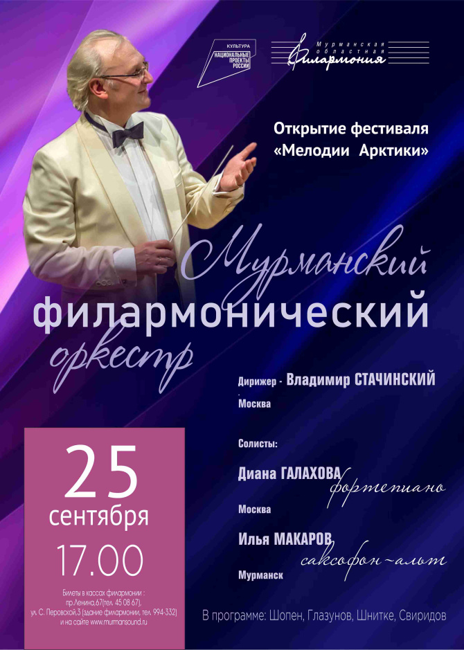 25 сентября северян приглашают на осенний фестиваль «Мелодии Арктики» с выступлением Мурманского филармонического оркестра под управлением московского дирижера Владимира Стачинского.