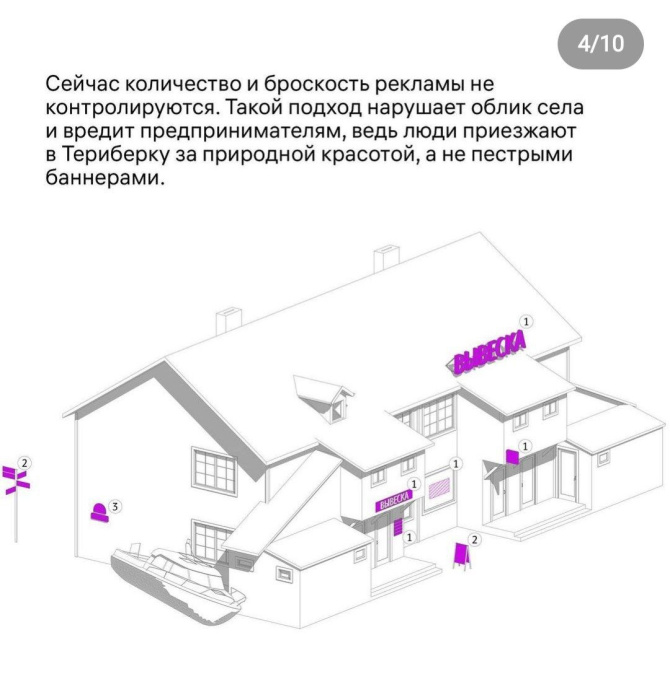 Для вывесок и табличек дизайнер предложил использовать обожжённое и необработанное дерево, кортеновскую сталь, рыболовную сеть и натуральный камень – чтобы показать красоту и самобытность села.