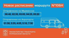 С 1 октября пригородный маршрут №106(Н) «Мурманск-Аэропорт» будет следовать по новому расписанию.