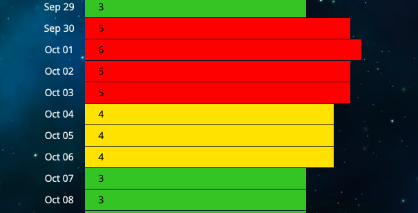 КР-индекс, характеризующий глобальную возмущённость магнитного поля Земли, достигнет значения в 5- 6 баллов