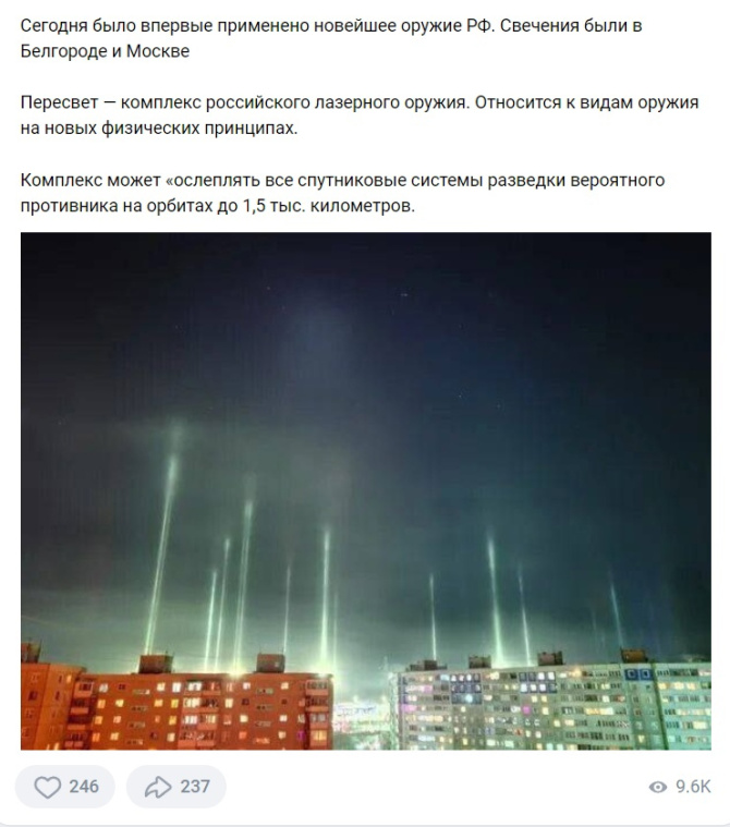 В соцстетях начали появляться фейк-ньюс о применении стратегического ядерного оружия. В качестве доказательства была прикреплена фотография световых столбов, заснятых в Мурманске. Об этом рассказал автор фотографии – синоптик-любитель Виталий Макаров.