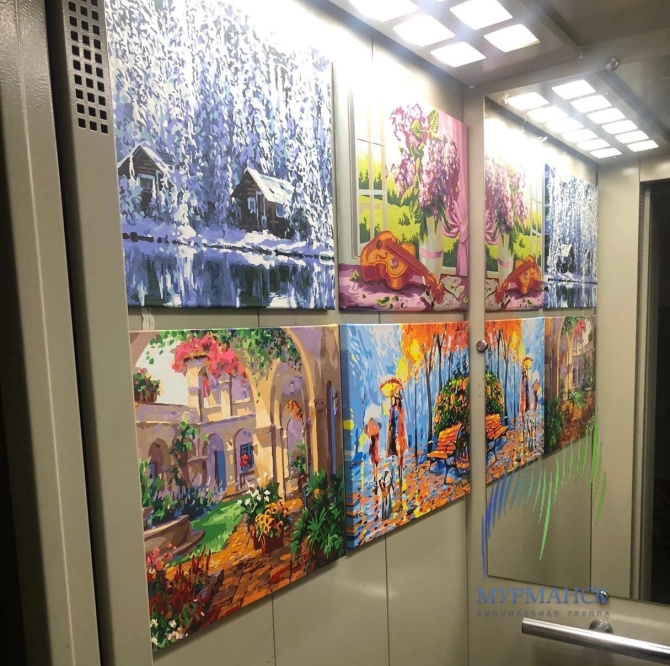 В лифте одного из мурманских домов местная жительница разместила четыре картины. Северяне рассказали об этом в соцсетях.