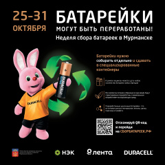 С 25 по 31 октября в Мурманске пройдет «Неделя сбора батареек». Специализированный контейнер будет установле…