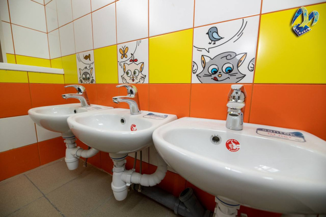 Также была отремонтирована кровля, заменены приборы отопления и сантехника, обновлены помещения пищеблока, прачечной, буфетных, туалетных и умывальных комнат.
