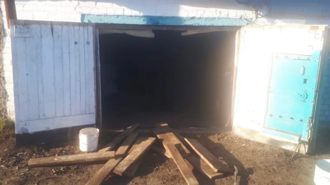Огнеборцы, вскрыв его мехинструментом, обнаружили в смотровой яме дымящееся неизвестное вещество в металлической емкости. При этом очаг возгорания не обнаружили, сам гараж поврежден не был, техники нет.