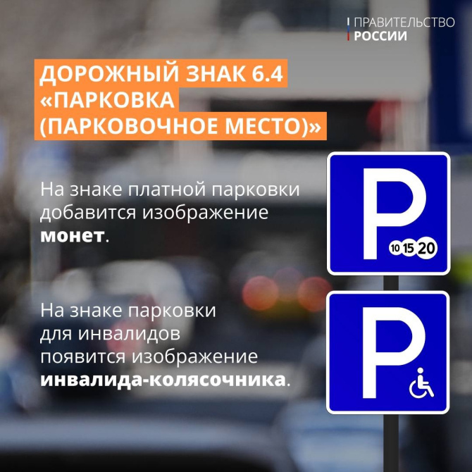 Также появятся таблички – «Зарядка автомобилей», «Лица, использующие для передвижения СИМ», на знак парковки для инвалидов добавят изображение инвалида-колясочника, а на знак платной парковки – обозначение монет.