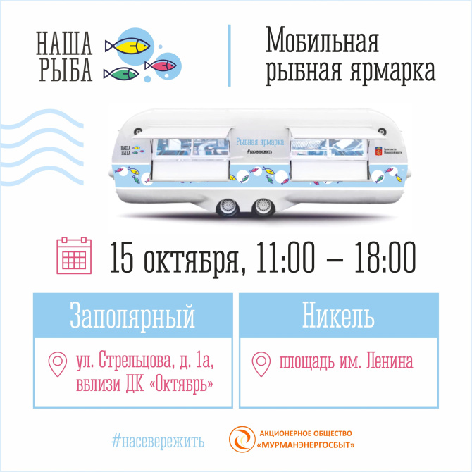 15 октября фудтраки «Наша рыба» приедут в Никель и Заполярный. Ярмарка будет работать в населенных пунктах с 11:00 до 18:00.