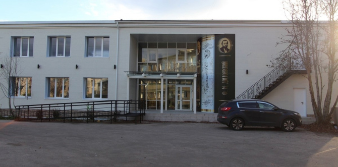 В рамках реконструкции заменена крыша, коммуникации, проводка. Воздушная входная группа стилизована под корешки томов с сочинениями русских классиков. Произведена укладка мозаичных полов и установка панорамных окон.