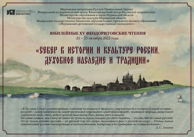 В столице Заполярья пройдут XV Феодоритовские чтения. Мероприятия юбилейной научно-просветительской историко-краеведческой конференции запланированы с 21 по 23 октября по теме «Север в истории и культуре России. Духовное наследие и традиции». Одна из самых крупных гуманитарных конференций в регионе соберет на своих площадках более 60 исследователей, ученых, музейных и архивных работников из Москвы, Санкт-Петербурга, Вологды, Архангельска, Новгорода и Мурманской области.