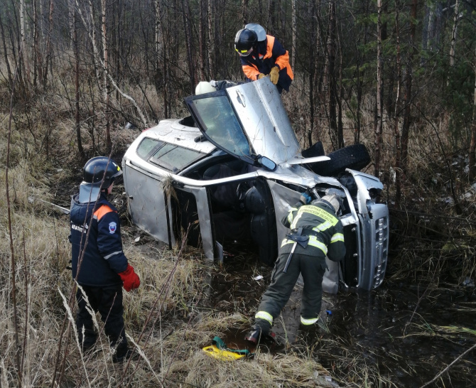 Как сообщили в МЧС Мурманска, легковой автомобиль съехал в кювет и опрокинулся на бок. Было спасено 4 человека.