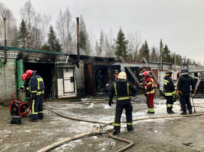 Сегодня, 26 октября произошло возгорание двух одноэтажных кирпичных гаражей напротив улицы Козлова, 9 в Апатитах.