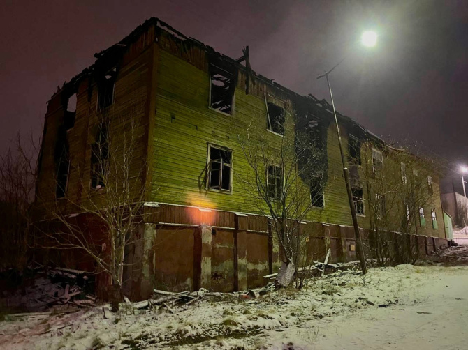 Ночью 27 октября в нежилом двухэтажном доме по улице Фрунзе, 12 в Мурманске случился пожар.