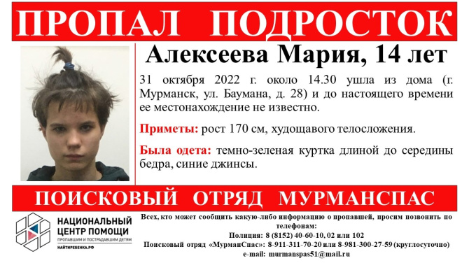 14-летняя Мария Алексеева ушла из дома №28 по улице Баумана 31 октября около 14:30. С тех пор местонахождение подростка неизвестно.