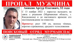 Волонтеры поискового отряда "МурманСпас" обращаются к северянам за помощью в розыске пропавшего гражданина.